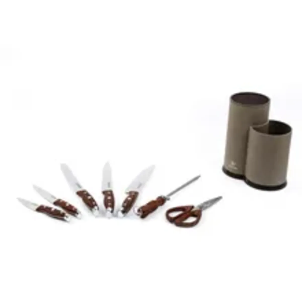 سرویس چاقو آشپزخانه لایف اسمایل مدل NSEL-2 زیر نظر بهترین سرآشپزهای دنیا طراحی و تولید شده است. نتیجه این همکاری ساخت چاقوهای باکیفیت با دستههای منحصر به فرد است. مجموعه چاقو لایف اسمایل از 8 پارچه مختلف شامل چاقو سرآشپز، چاقو نان، چاقو برش خورده، ابزار چاقو، چاقو تکهای، شاپنر، قیچی و جعبه نگهداری تشکیل شده است.
