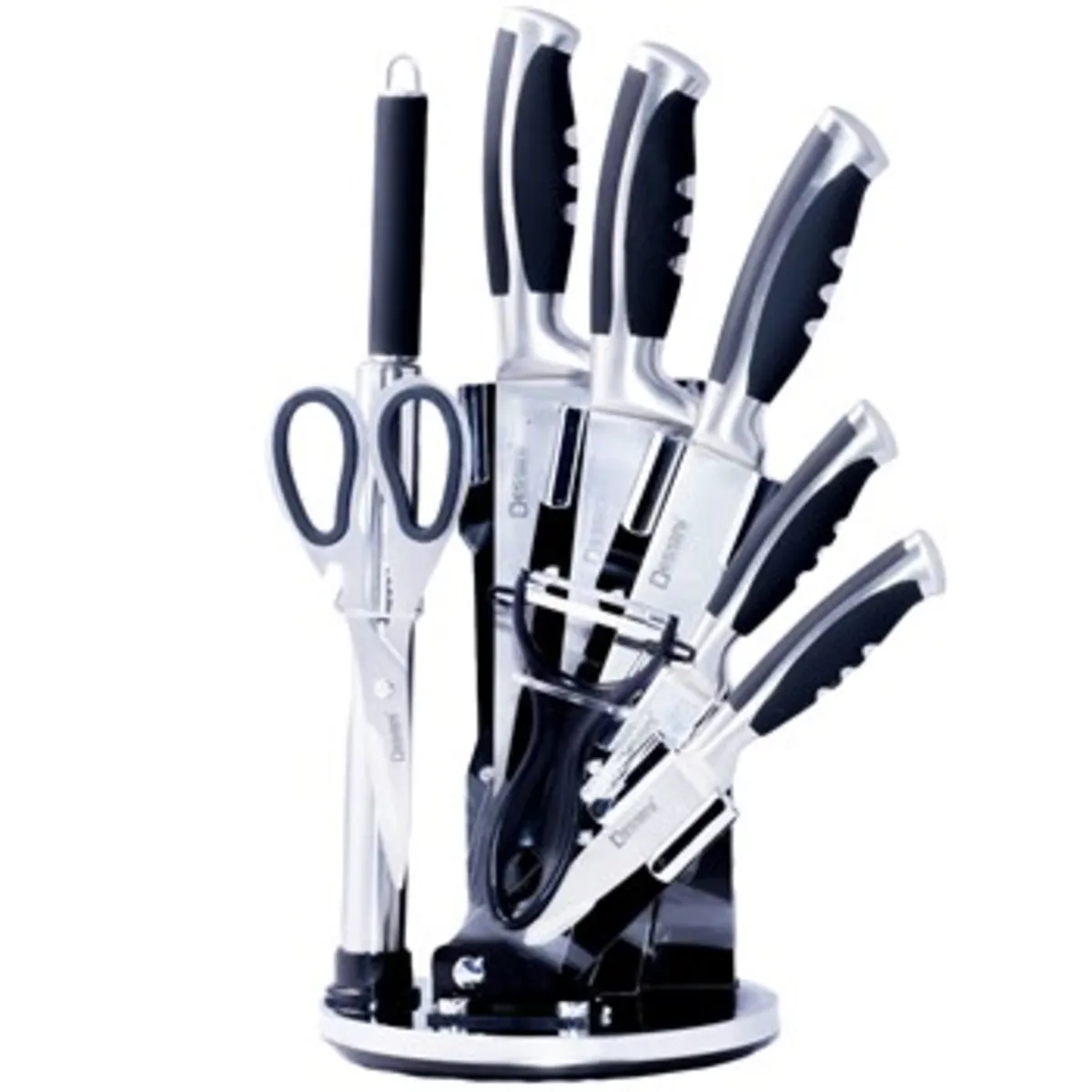 سرویس چاقوی آشپزی باکیفیت بایستی دارای ماندگاری بالا باشد. بدین معنی که بعد از مدتی خاصیت تیزشوندگی خود را از دست ندهند و کند نشوند. اینسرویس چاقو dessini از جمله مدلهای باکیفیتی است که به راحتی میتوانید سالهای سال در آشپزخانه خود از آنها استفاده نمایید. تمام اقلام این سرویس در جای مخصوص خود در یک پایهی از جنس اکرلیک با قابلیت چرخشی قرار دارند.