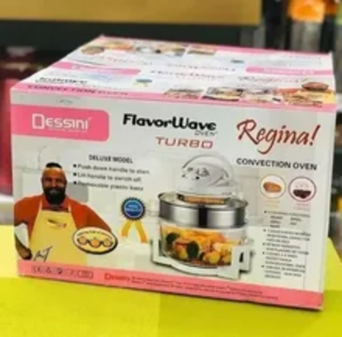 هواپز و فر نوری توربو دسینی، دستگاهی سالم همراه با قیمت مقرون به صرفه است که به لامپ هالوژنی مجهز شده و با تولید امواج نوری و گردش هوای گرم، پخت یکنواخت قسمت های مختلف غذا را در کمترین زمان ممکن به ارمغان می آورد و به جرات می توان گفت، بهترین و سالم ترین دستگاه، جهت طبخ غذا بدون آب و یا روغن محسوب می شود که توانسته طرفداران بسیاری را به سوی خود جذب نماید. عدم نیاز به روغن و یا آب، از ویژگی های برجسته این محصول به شمار می آید و برای افرادی که به دنبال رژیم های کم کالری و یا گیاه خواری هستند، بسیار کاربردی می باشد. گفتنی است، این دستگاه علاوه بر طبخ غذای رژیمی، از سرعت پخت بیشتری نسبت به دیگر دستگاه های مشابه موجود در بازار برخوردار است . بوسیله این فرنوری توربو دسینی می توان بدون هیچ محدودیتی انواع خوراکی ها را با تنظیم زمان، براساس نوع مواد غذایی طبخ نمود. این دستگاه با بهره گیری از موتوری با توان 1200 وات، برای مصارف خانگی بسیار ایده آل می باشد. فر هالوژنی Dessini Turbo دارای ظرف شیشه ای شفاف با ظرفیت 12 لیتر است و برای پخت کیک، بخارپز کردن، برشته و بریانی کردن، سرخ کردن بدون روغن، پخت پیتزا، تست نان، خشک کردن میوه، پخت کیک، یخ زدایی مواد منجمد و ... بسیار کاربردی خواهد بود. این هواپز دسینی مدل توربو به گونه ای است که می توان به صورت همزمان از دو طبقه برای طبخ غذاهای متفاوت استفاده کرد. این محصول به صورتی طراحی شده تا روغن و چربی موجود در مواد غذایی به ته ظرف ریخته شود و در نتیجه، با عدم جذب روغن به مواد در حال پخت، بتوان غذای سالم تری را تهیه نمود. همچنین این مدل به تایمر قابل تنظیم 60 دقیقه ای نیز مجهز شده و با امکان تنظیم درجه حرارت متناسب با نوع مواد غذایی، آشپزی را آسان تر کرده است.