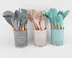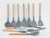 دسته های چوبی از جنس بامبو و یک ظرف نگهدارنده از جنس پلاستیک میباشد. این سرویس از وزن متعادل و دیزاین منحصر بفردی برخوردار است که باعث میشود در دست گرفتن آن آسان و پخت و پز را راحت می کند. سیلیکون به کار رفته در این محصول ساخته شده از مواد غیر سمی ، بی بو و سازگار با محیط زیست است. سرویس کفگیر ملاقه سیلیکونی دسته بامبو در برابر درجه حرارت سرما تا 30- و گرما 230+ درجه سانتی گراد مقاومت دارد. انعطاف پذیری ، رویه های نرم از خراشیدن و آسیب رساندن به ظروف شما جلوگیری میکند و همچنین باعث کاهش سر و صدا هنگام آشپزی می شود