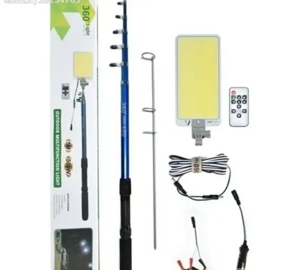 چراغ کمپینگ تلسکوپی با کنترل از راه دور ، به شما این امکان را میدهد تا در مواقع ضروری و یا در کمپ ها و همچنین پیک نیک های خود منبع نوری فوق العاده ای داشته باشید و با قابلیت افزایش ارتفاع آن می توانید نور را از بالا و در ارتفاع قرار دهید تا بیشترین فضای ممکن را روشن نمایید . با داشتن کنترل از راه دور ، برای کم کردن و یا خاموش و روشن نمودن دستگاه نیازی به نزدیک شدن به اتصالات و یا دستگاه نداشته و به راحتی و از راه دور آن را انجام خواهید داد .مدل light800 ال ای دی 800 وات می باشد