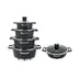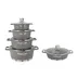 سرویس قابلمه چدنی لایف اسمایل مدل FLCM10دارای چهار عدد قابلمه چدنی در اندازه های 20 - 24 - 28 -32 و تابه در اندازه 28 با درب شیشه ای بسیار بادوام و دسته های نسوز (دسته های قابلمه از جنس خود بدنه یعنی چدنی ) می باشند این سرویس قابلمه کیفیت ساخت بسیار بسیار بالایی دارد . کفه بیرونی قابلمه طوری طراحی شده است که گرما را بسیار سریع جذب خود کرده و در نتیجه قابلمه سریعتر از سایر قابلمه ها داغ خواهد شد و مزیت دیگر آن این است که طراحی فوق العاده کف بیرونی آن باعث می شود قابلمه مدتی تمام داغ بماند و در نتیجه غذای شما بعد از خاموش کردن شعله گاز مدتی داغ بماند . درب شیشه ای و شفاف از جنس پیرکس باعث می شود در هنگام پخت غذا براحتی محتویات قابلمه را مشاهده و مراحل پخت غذا را مشاهده کرد. پیرکس در مقابل حرارت بسیار مقاوم است . شستشوی بسیار راحت و تنها با یک ابر از مزایای ظروف گرانیتی است که استفاده از آن را بیش از پیش راحت کرده است.