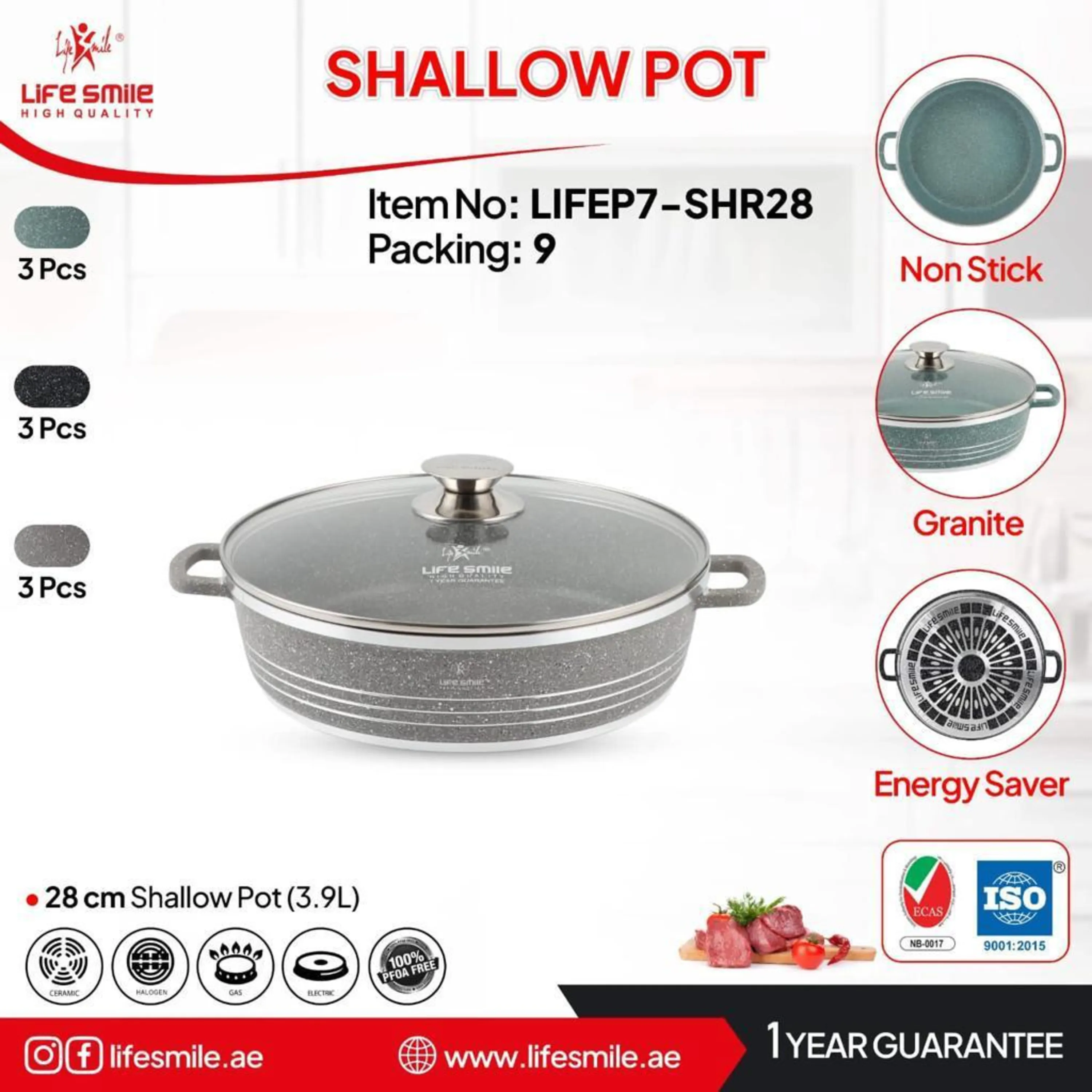 مشخصاتویژگی های جدیدجنس بدنهتمام گرانیتسایز28رنگ بندیداردجنس سرپیرکسبرندلایف اسمایلسطح نچسبداردشعله پخش کندارد