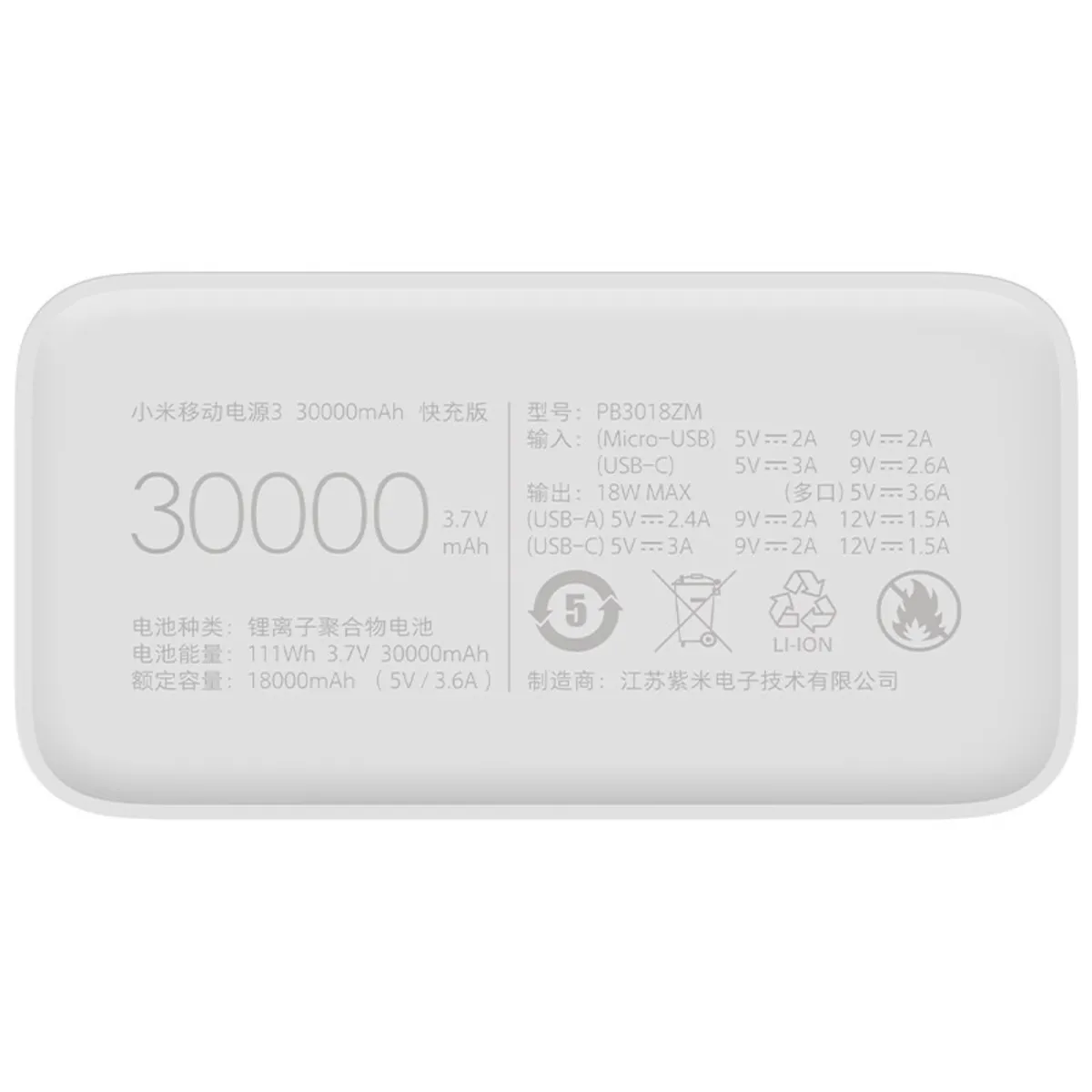 پاور بانک 30000 شیائومی مدل PB3018ZMدارای باتری داخلی لیتیوم یونی ظرفیت 30000 میلیآمپر ساعت است. این باتری قدرت و توانایی شارژ گجت های هوشمند را به دفعات زیاد و مکرر دارد.