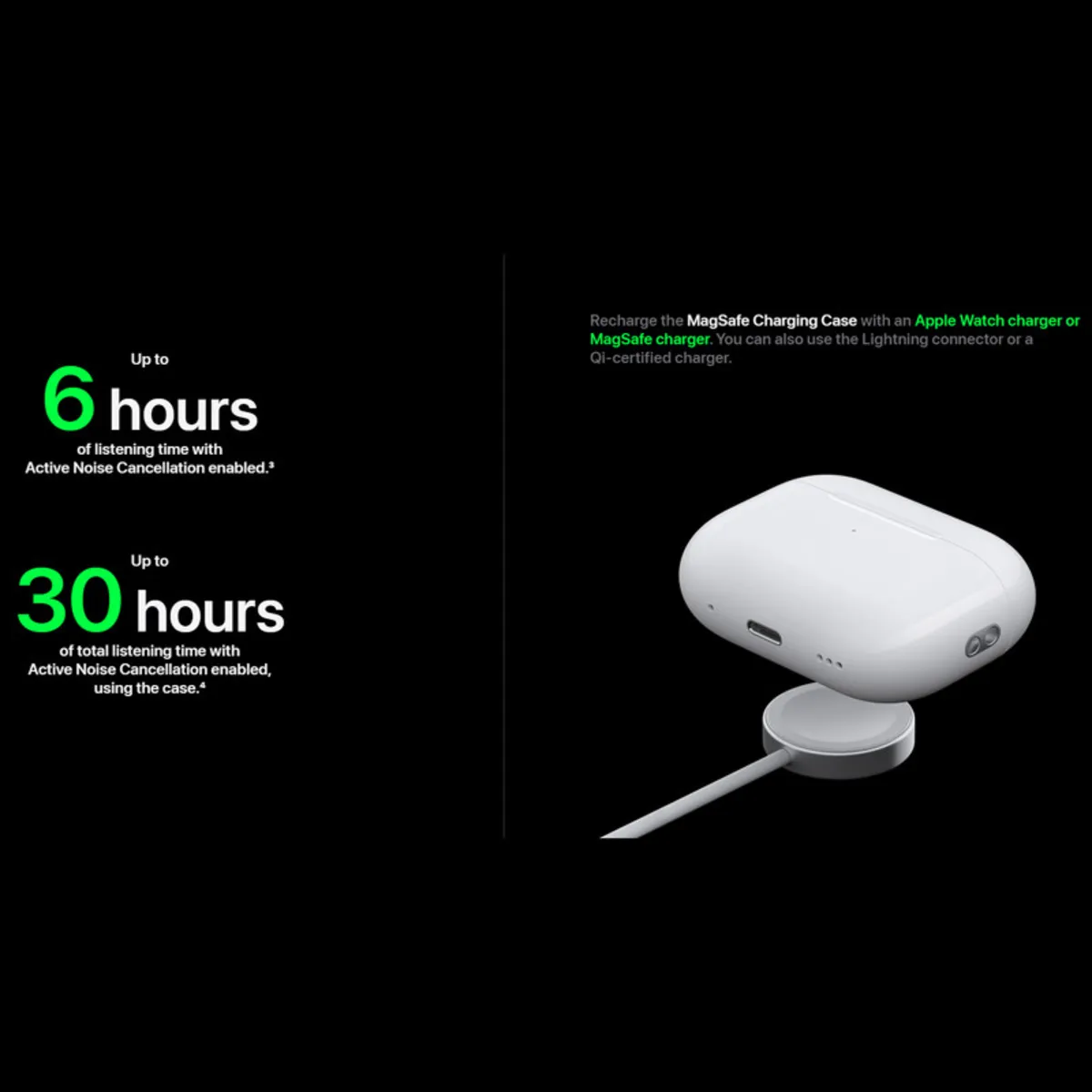 هدفون بلوتوثی اپل مدل AirPods Pro 2nd Generation در طول چند ماه به چنان محبوبیتی رسیده که به انتخاب اول کاربران تبدیل شده است.. گجت نسل جدید این کمپانی بزرگ یعنی هندزفری بی سیم اپل مدل airpods pro 2 با تراشه جدید H2 همراه شده است. این تراشه منجر به حذف نویز فعال و عملکرد دو برابر بهتره این مدل نسبت به قبل شده است. همچنین این ویژگی باعث شده تا صدا کیفیت بهتری پیدا کند. یکی دیگر از مشخصات عمده و اصلی ایرپاد پرو، کیفیت صوتی بینظیری است که در مقابل محصولات مشابه سایر برندها دارد. شارژ کیس این محصول به کمک کابل لایتنینگ یا شارژ با استفاده از استاندارد Qi یا MagSafe جزو مشخصات مهم و اصلی ایرپاد پرو 2 اپل محسوب میشود. ایرپاد پرو2 اپل همچنین میتواند با شارژر اپل واچ نیز شارژ شود. با هر بار شارژ میتوان تا 6 ساعت از از هدفون استفاده کرد. از این رو هندزفری بی سیم اپل مدل airpods pro 2 به عنوان یک ایرپاد استاندارد مطابق با نیاز کاربران طراحی شده است. کیس شارژ ایرپاد پرو در حال حاضر با شارژدهی تا 30 ساعت به عنوان مزیت دیگری برای خرید ایرپاد پرو محسوب میشود. از دیگر تغییرات مهمی که در هدفون بیسیم اپل مدل airpods pro 2nd generation به وجود آمده، میتوان به این مورد اشاره کرد که عمر باتری در این سری بهبود یافته است. همچنین روی کیس ایرباد پرو 2 اسپیکری قرار گرفته که میتوانید از آن برای پیدا کردن کیس استفاده کنید.