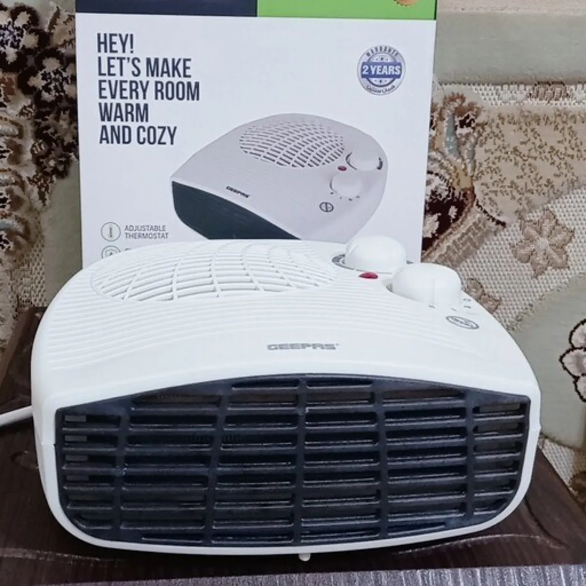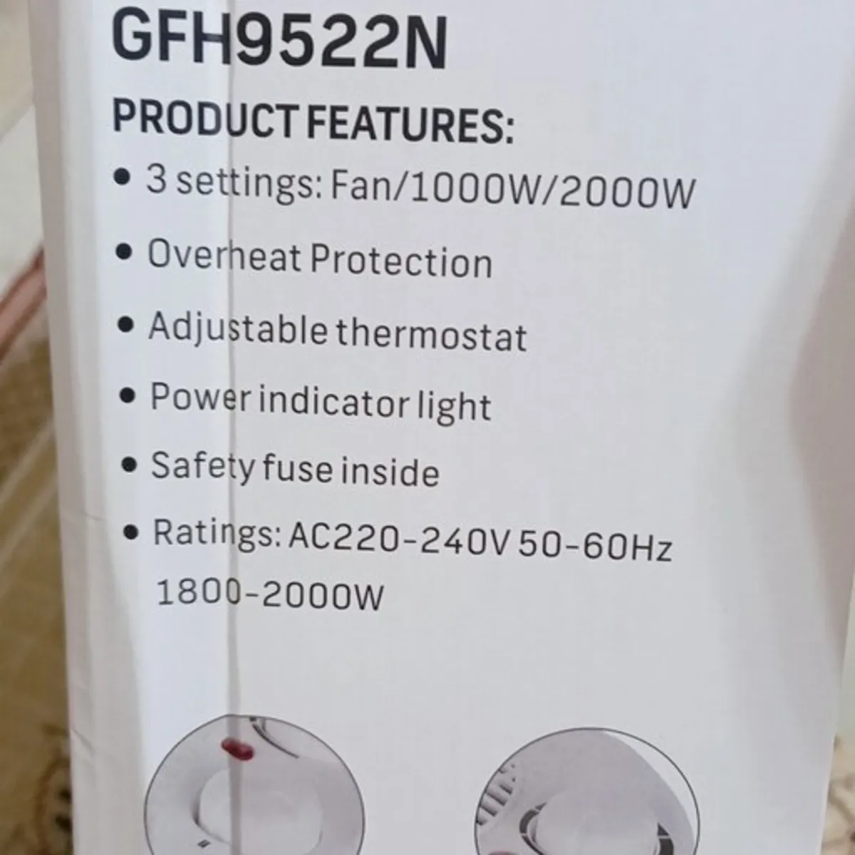 فن هیتر GEEPAS مدلGFH9522 ، یک وسیله گرمایش کم حجم و وزن و با کارایی بالا و ایمنی مناسب می باشد. بدنه دستگاه از جنس مواد پلاستیک بوده و بعلت دمش توسط فن دستگاه ، حرارت به اندازه ای نمی رسد که پلاستیک آسیب ببیند . البته دستگاه در برابر گرم شدن بیش از حد به هر دلیل ، حفاظت شده است و با عمل کردن یک کلید " بی متال " اتصال الکتریکی المنت قطع شده ، گرمایش متوقف می شود. . توان فن هیتر جیپاس قابل تنظیم در دو مقدار 1000 و 2000 وات است. همچنین دستگاه در وضعیت باد خنک بدون گرمایش نیز کار می کند .با ترموستات روی پنل دستگاه می توان دمای دلخواه را در محیط ایجاد کرد .