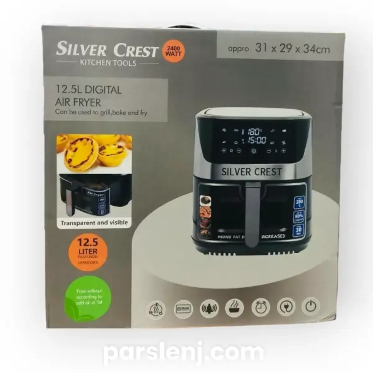👈 سرخکن سیلورکرست در رنگ مشکی و استیل در بازار عرضه شده است. در قسمت جلویی دستگاه یک صفحه نمایش رنگی با قابلیت لمسی تعبیه شده است که کنترل و فرماندهی کل دستگاه از این قسمت صورت میگیرد. در این صفحه نمایش حالت ((MANUAL)) نیز دیده شده تا شما بتوانید دما و زمان دلخواه خود را بصورت دستی وارد کنید. .