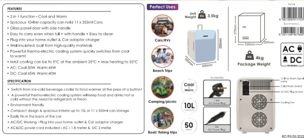 مشخصاتویژگی های جدیدتوان مصرفیظرفیت10 لیترقابلیت سرد و گرمدارددمای گرم45 واتدمای سرد48 واترنگمنبع تغذیهبرق شهری و آداپتورمناسب برایدر انواع ماشین . کنار تخت . نگهداری لوازم آرایشی و ...