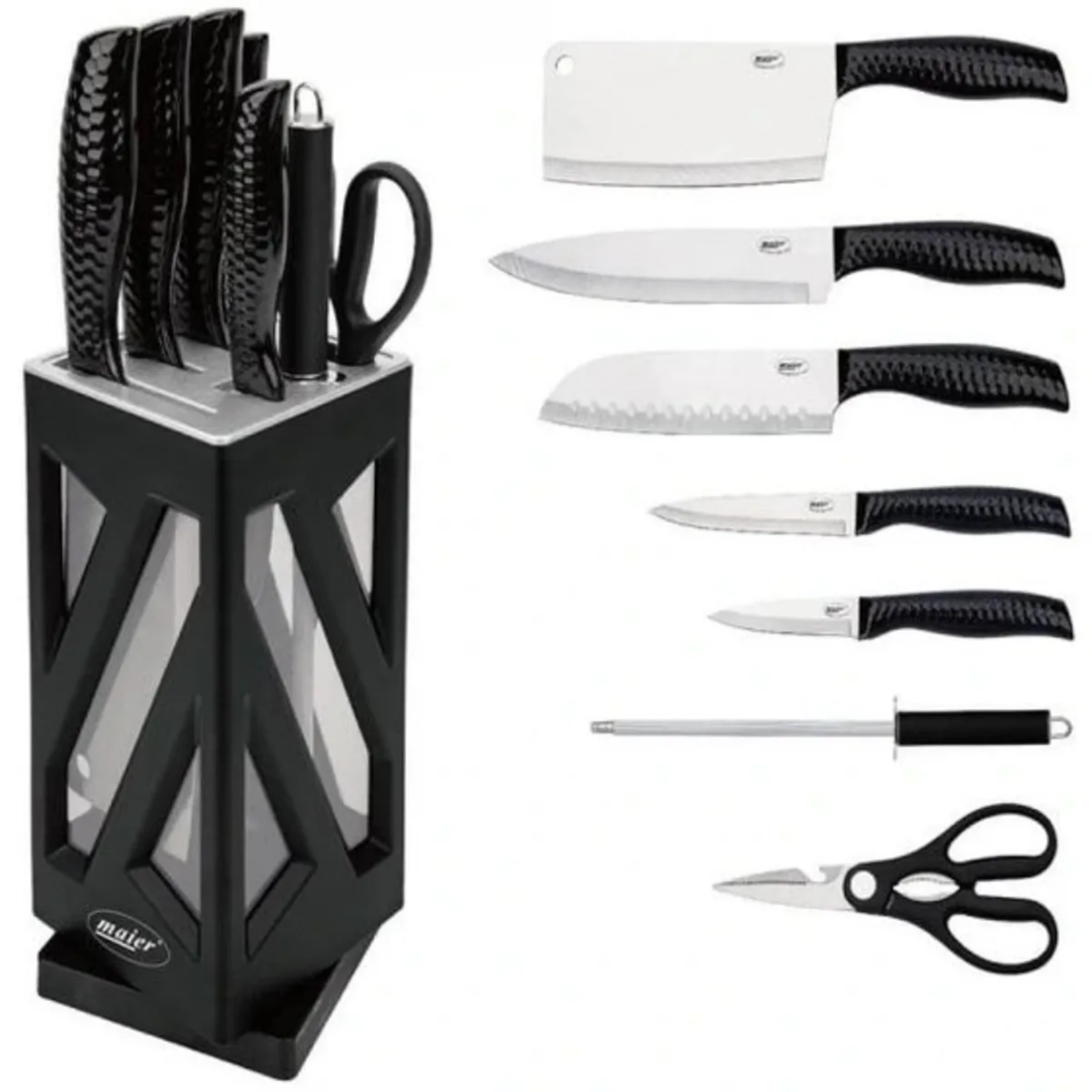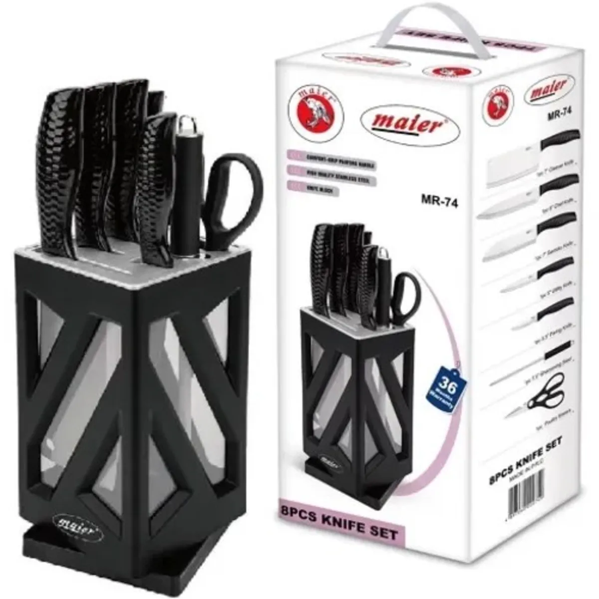 اگر به دنبال داشتن چاقوهای بسیار برنده هستید و از کند شدن گاه و بیگاه چاقو های خود خسته شدهاید ما برای شما پیشنهاد جالبی داریم. ست چاقوی آشپزخانه 8 تکه کارد مایر مدل MR-74 یکی از محصولات تولید شده و با کیفیت توسط شرکت «مایر المان » بوده و برای استفاده در کارهای پوست کندن و برش و…کارایی بسیار دارد. این مدل تیغههای آن از جنس استیل ضدزنگ با روکشسرامیک است. این ست چاقو به صورت 8 پارچه بوده