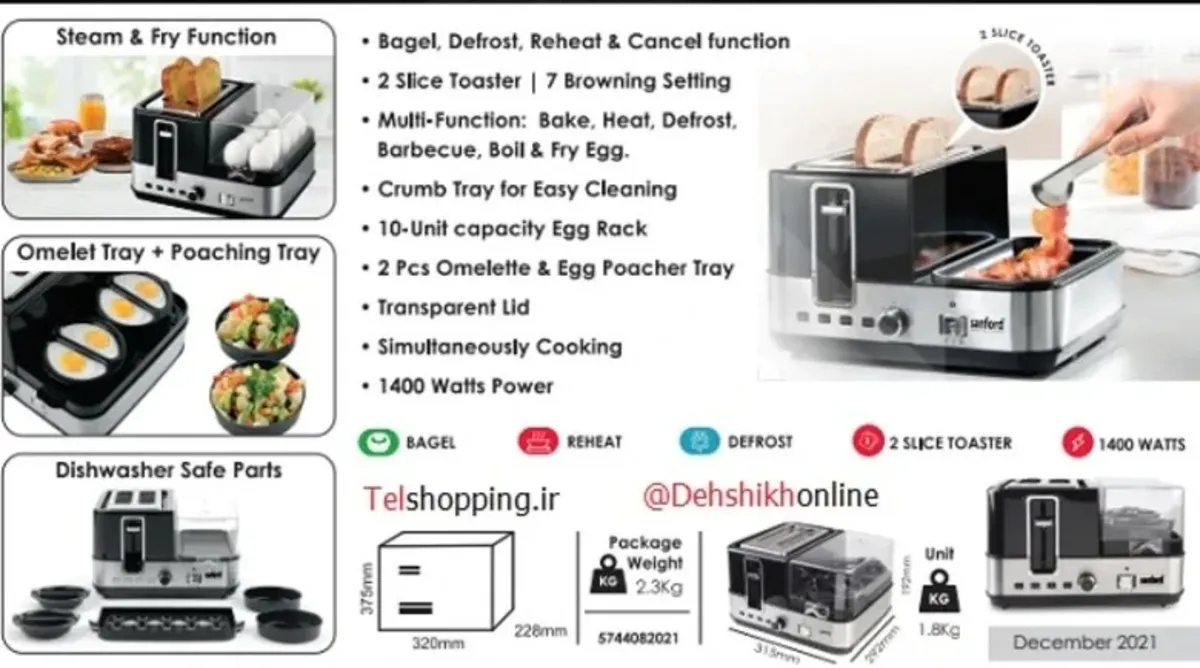 معرفیظرفیت10 لیتراقلام همراهسینی نچسب کف آون ، دو عدد ظرف پخت نیمروسایر ویژگی هاامکان دیفراست کردن نان ، پخت نیمرو با دو عدد ظرف پخت ، ظرف آب پز کردن تخم مرغ وزن6000 کیلوگرمابعاد24 × 20 × 30 سانتیمتر