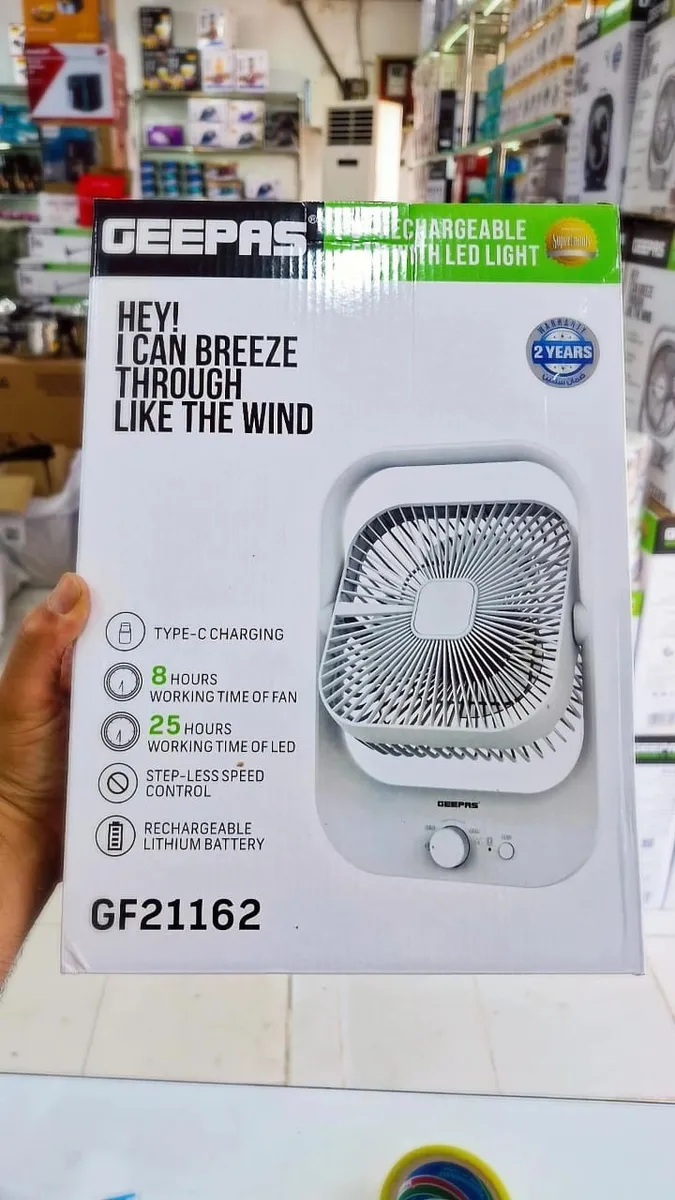 فن شارژی Geepas با نور LED می تواند همراه کامل شما در فصل گرما باشد. می توان از آن برای فعالیت های خنک کننده خانه و محل کار استفاده کرد. این یک فن کوچک اما قدرتمند است که به راحتی قابل استفاده است. در بالاترین گزینه جریان هوای قوی ایجاد می کند! با سرعت های قابل تنظیم، به شما این امکان را می دهد که نیازهای خنک کننده خود را با حداقل و حداکثر سرعت سطح برآورده کنید. سرعت مناسب فن را با چرخاندن مکرر دکمه سرعت تنظیم کنید. همراه با محافظ فن با کیفیت بالا، از ایمنی انگشتان کودک شما اطمینان حاصل می کند. فن شارژی Geepas با نور LED همچنین دارای چراغ شب LED و ورودی 5 ولت خورشیدی DC است.